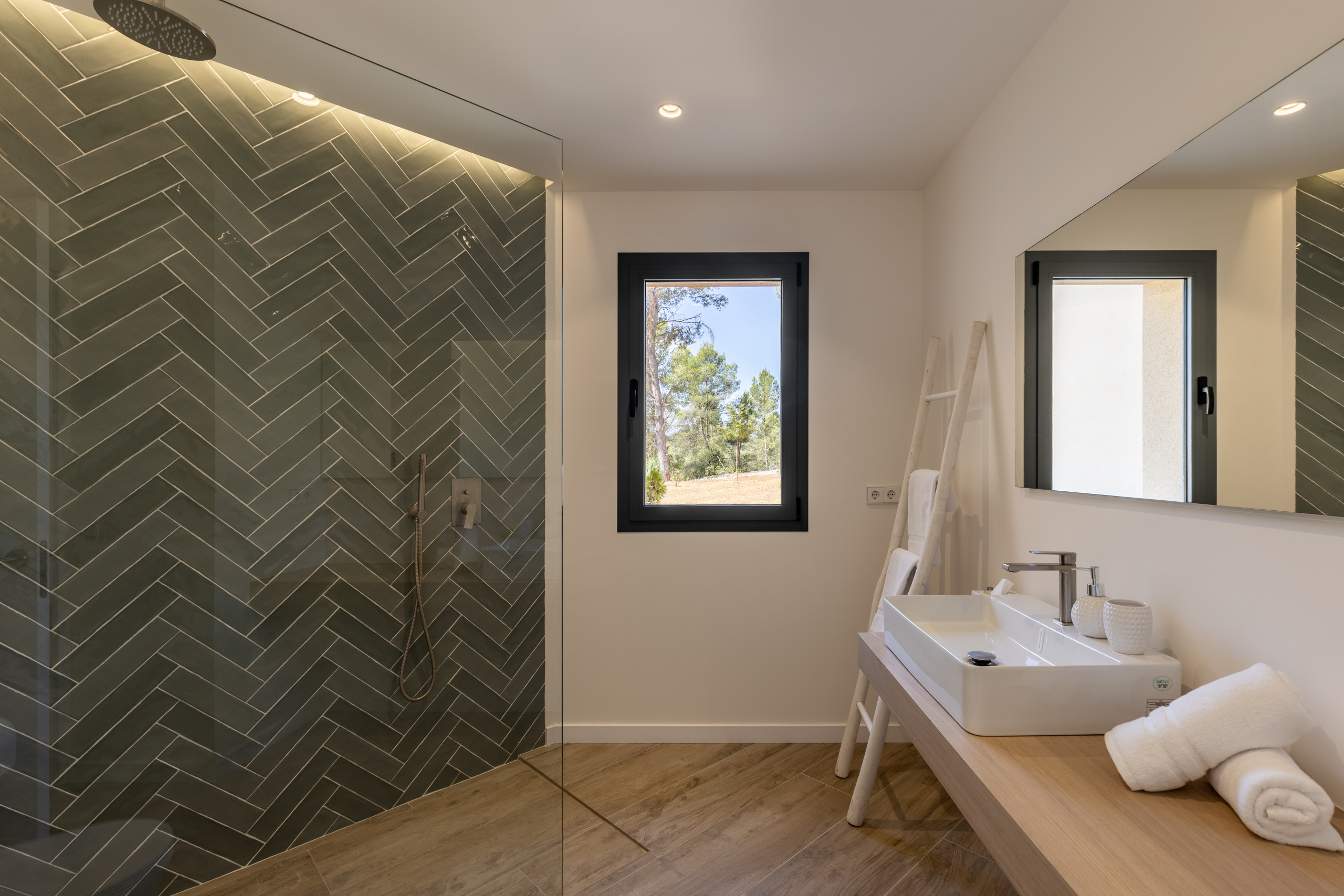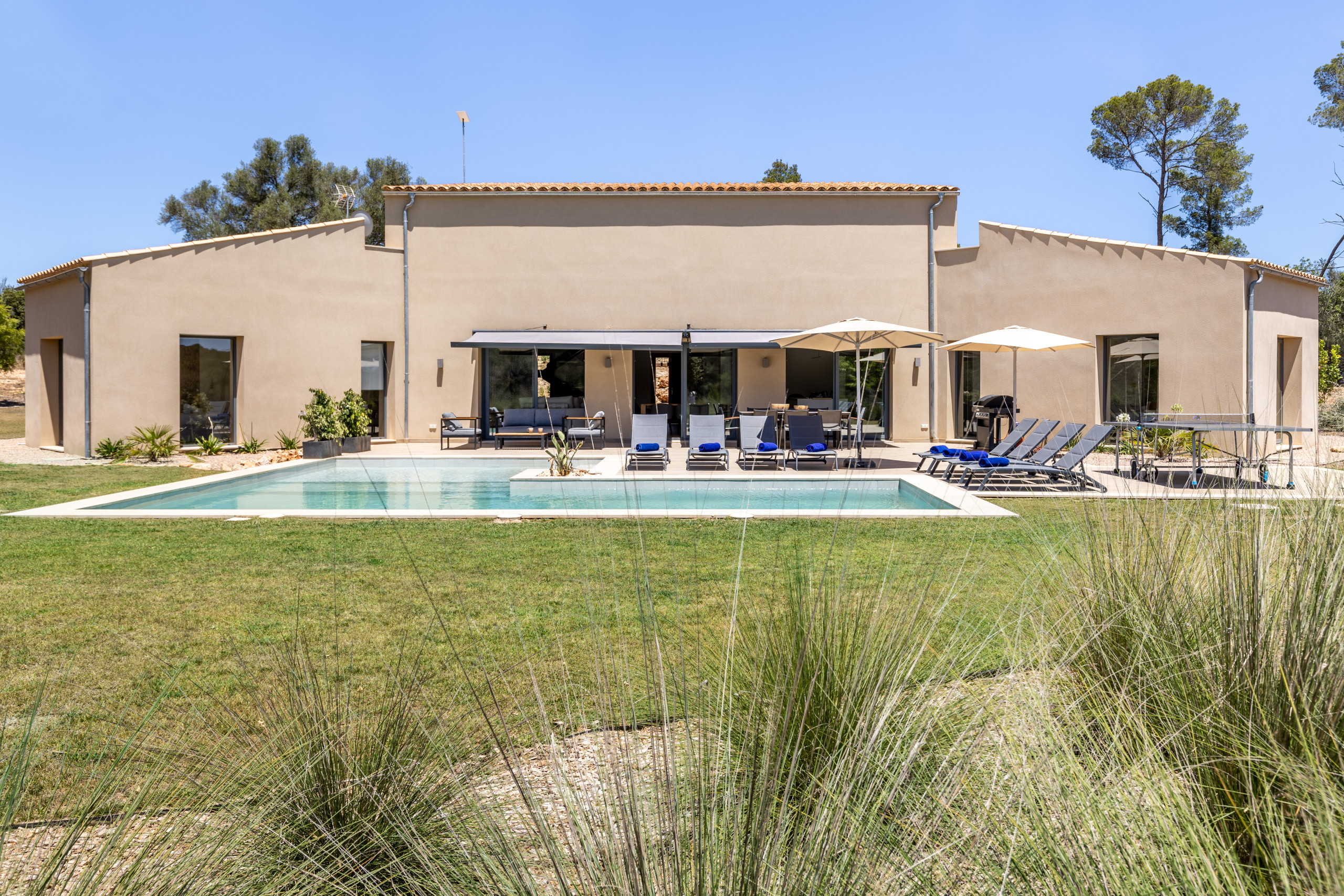 Los espacios comunes incluyen una sala de estar con TV y acceso a internet WiFi, así como una terraza privada de 50 m2 con mobiliario de jardín y una zona de barbacoa, perfecta para disfrutar de comidas al aire libre. Los huéspedes también podrán relajarse en la piscina privada de 60 m2, rodeada de un amplio jardín de 5.000 m2.